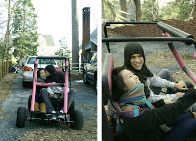 We got a bit of cabin fever and decided to take the g0-kart out for a little spin. It was fun, but so cold!!!